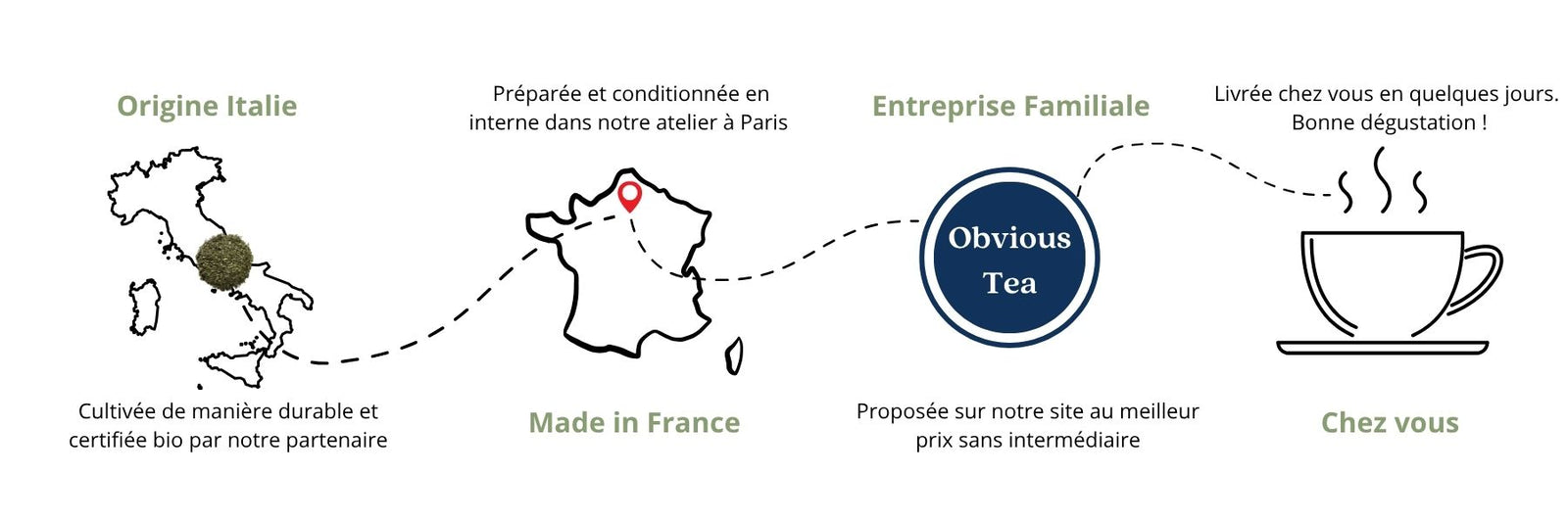 Nos tisanes sont produites directement depuis notre laboratoire en région parisienne. Nous les expédions entre 1 et 2 jours ouvrés