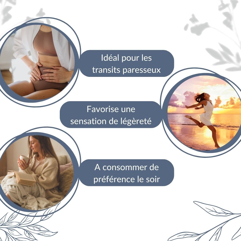 Lâinfusion de feuilles de sĂ©nĂ© bio favorise une agrĂ©able sensation de lĂ©gĂšretĂ© en facilitant lâĂ©limination naturelle et la digestion. En aidant Ă libĂ©rer lâorganisme des rĂ©sidus accumulĂ©s, elle contribue Ă dĂ©sencombrer le systĂšme digestif et Ă procurer un bien-ĂȘtre global, idĂ©al aprĂšs les repas ou lors de pĂ©riodes de lenteur intestinale.