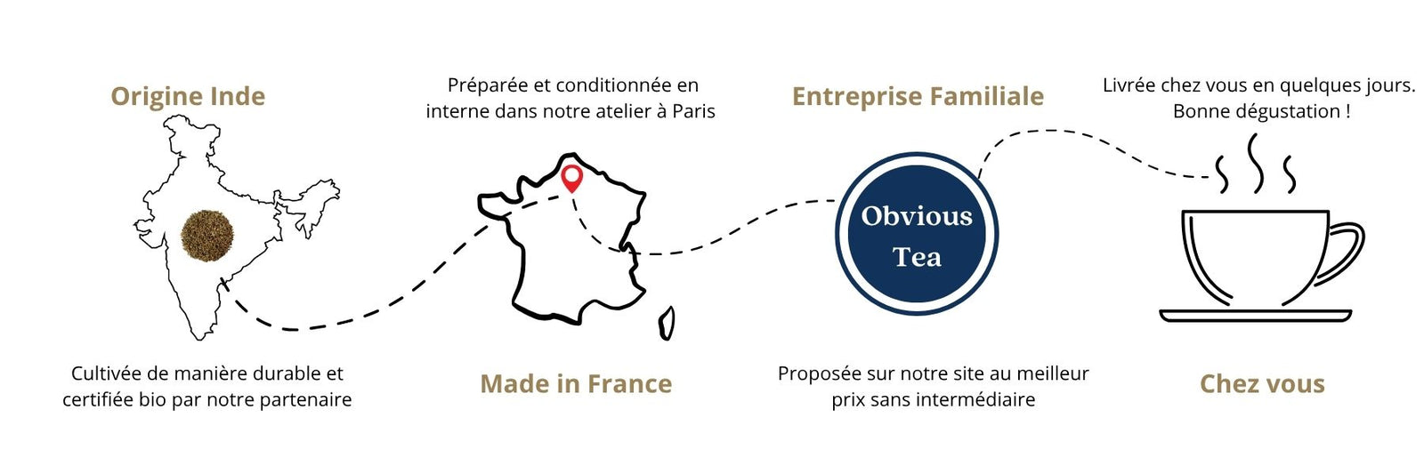 Nos tisanes sont produites directement depuis notre laboratoire en région parisienne. Nous les expédions entre 1 et 2 jours ouvrés