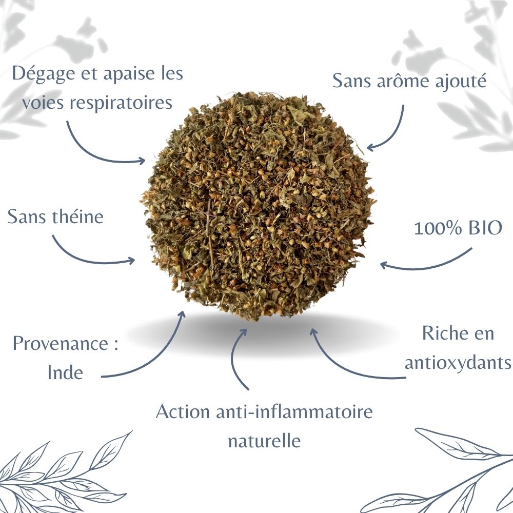 Riche en antioxydants, flavonoĂŻdes et huiles essentielles, le tulsi bio renforce les dĂ©fenses naturelles et aide Ă protĂ©ger lâorganisme contre les agressions extĂ©rieures. Son action purifiante et tonifiante en fait une plante prĂ©cieuse pour soutenir lâimmunitĂ© tout au long de lâannĂ©e.